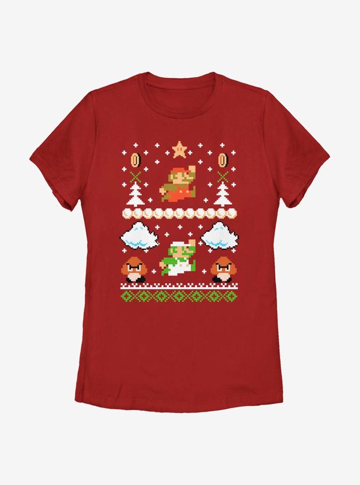 Plongez dans l’univers de Super Mario Bros avec ce T-shirt rouge pour femme. Dynamique et coloré, il capture l’esprit des jeux vidéo rétro. Parfait pour afficher votre passion avec style.